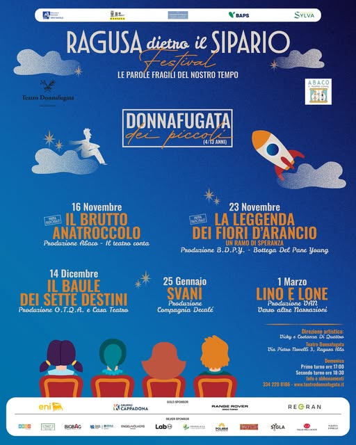 DONNAFUGATA, di Costanza Di Quattro con Pietro Montandon Ritorna la magia del 𝑭𝒆𝒔𝒕𝒊𝒗𝒂𝒍 “𝑹𝒂𝒈𝒖𝒔𝒂 𝒅𝒊𝒆𝒕𝒓𝒐 𝒊𝒍 𝒔𝒊𝒑𝒂𝒓𝒊𝒐 – 𝑳𝒆 𝑷𝒂𝒓𝒐𝒍𝒆 𝑭𝒓𝒂𝒈𝒊𝒍𝒊 𝒅𝒆𝒍 𝒏𝒐𝒔𝒕𝒓𝒐 𝒕𝒆𝒎𝒑𝒐”, con una nuova stagione di teatro, poesia e musica nel cuore di Ragusa Ibla.𝑈𝑛 𝑣𝑖𝑎𝑔𝑔𝑖𝑜 𝑑𝑖 𝑒𝑚𝑜𝑧𝑖𝑜𝑛𝑖, 𝑝𝑒𝑛𝑠𝑖𝑒𝑟𝑜 𝑒 𝑏𝑒𝑙𝑙𝑒𝑧𝑧𝑎 𝑐𝑜𝑛𝑑𝑖𝑣𝑖𝑠𝑎. Fino al 16 ottobre diritto di prelazione per i vecchi abbonati. 𝐀𝐛𝐛𝐨𝐧𝐚𝐦𝐞𝐧𝐭𝐨 |