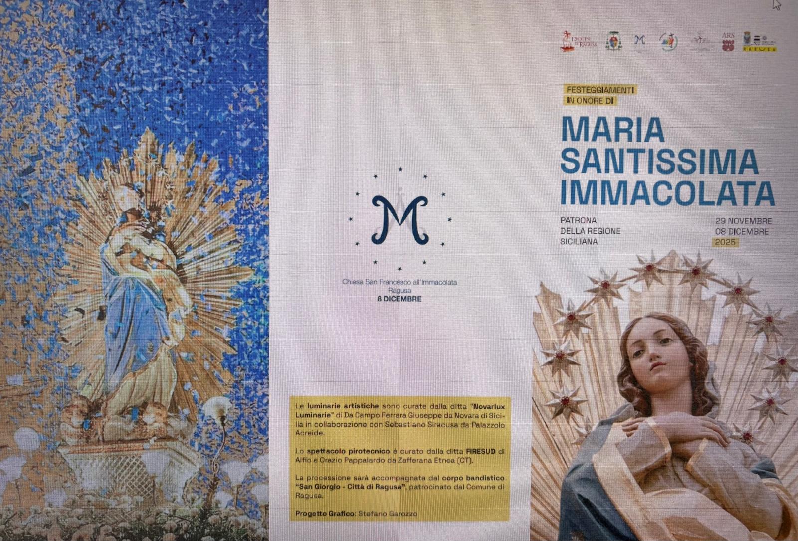 Domenica 7 Dicembre 10:30 - 20:00 Lunedì 8 Dicembre 10:30 - 20:00 Un presepe che racconta la Sicilia Un piccolo angolo di Ottocento siciliano prende vita in questo presepe ispirato al nostro territorio. Tra *masserie*, *maniscalchi* e la tipica *putia du vinu*, dove un tempo ci si fermava per un bicchiere di vino o un ore 11.00 Celebrazione Eucaristica presso la Chiesa Madre San Giorgio. ore 17.00 Santo Rosario, litanie cantate e canto dello stellario. ore 18.00 Celebrazione Eucaristica. ore 19.00 Solenne Celebrazione dei primi Vespri, presieduti da S.E.R.ma Mons. Giuseppe La Placa Vescovo di Ragusa, e recita dell’ Atto di Affidamento della Città di Ragusa all’Immacolata, da parte del