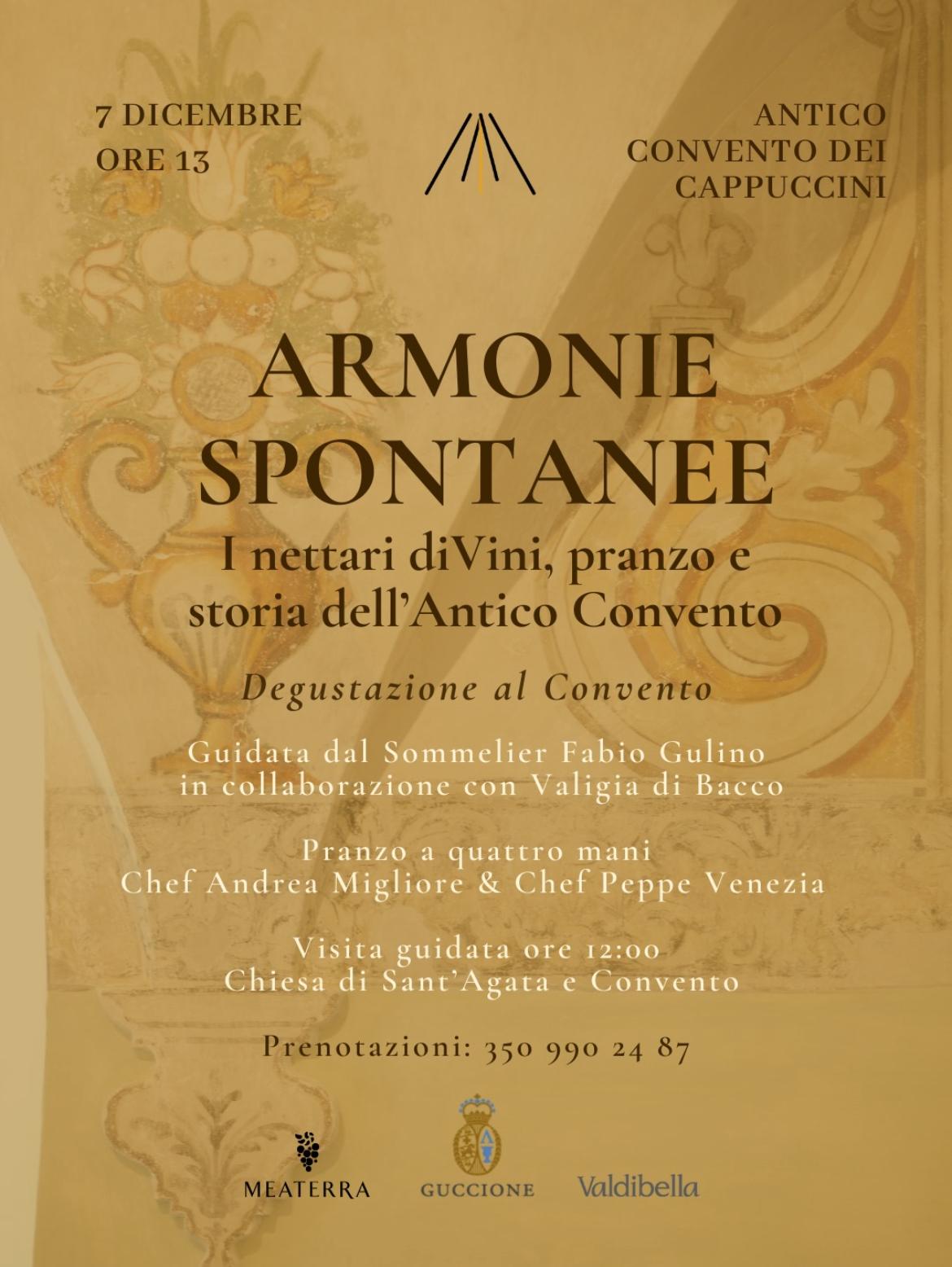 DEGUSTAZIONE AL CONVENTO Guidata dal Sommelier Fabio Gulino in collaborazione con Valigia di Bacco Pranzo a quattro mani: Chef Andrea Migliore & Chef Peppe Venezia Visita guidata ore 12:00: Chiesa di Sant'Agata e Convento Prenotazioni: 350 9902487 |