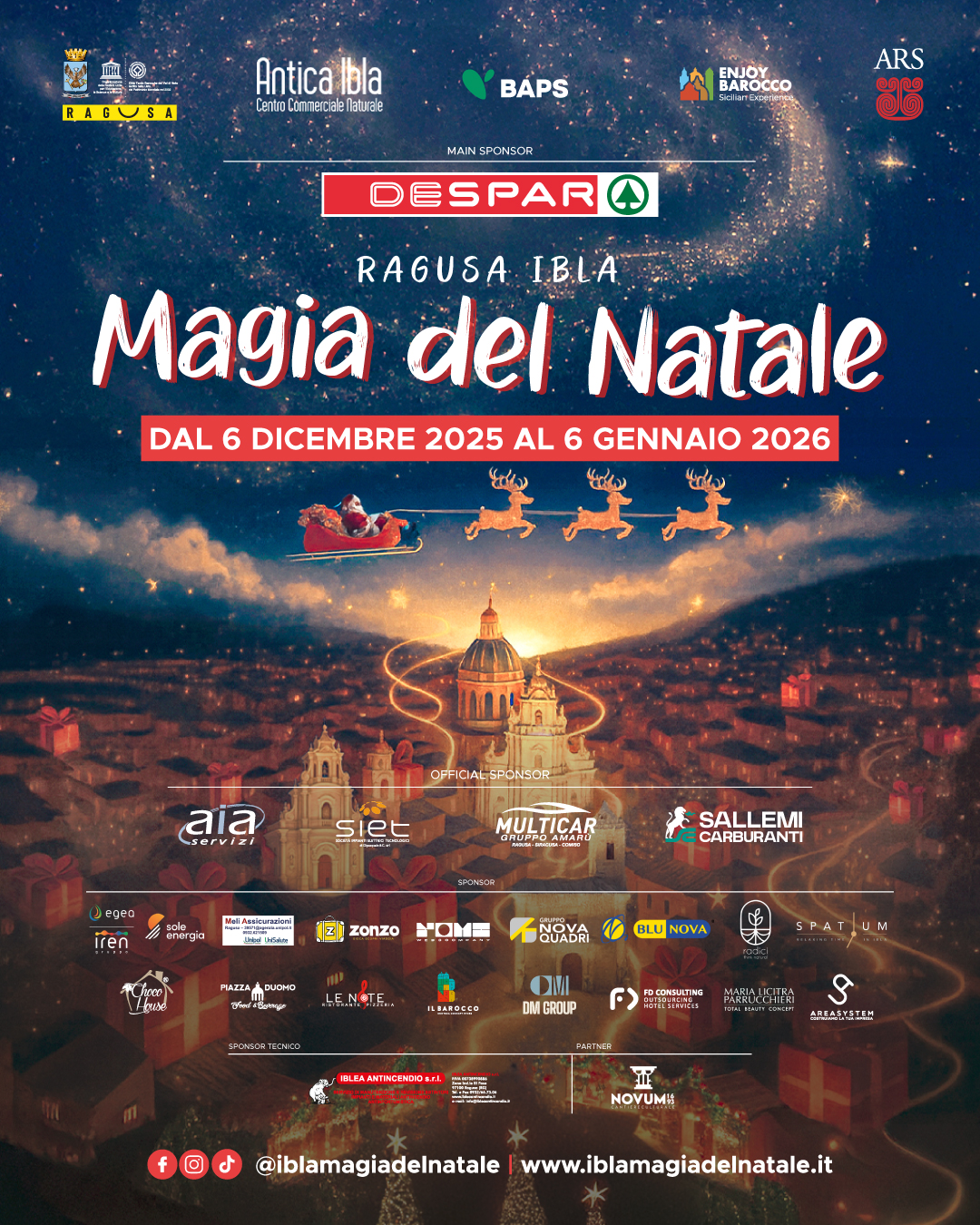 Domenica 21 Dicembre 16:00 Seguite gli Elfi narranti e la Christmas band per arrivare alla vera casa di Babbo Natale al Christmas Village dei Giardini Iblei. Partenza da piazza Duomo - Itinerante