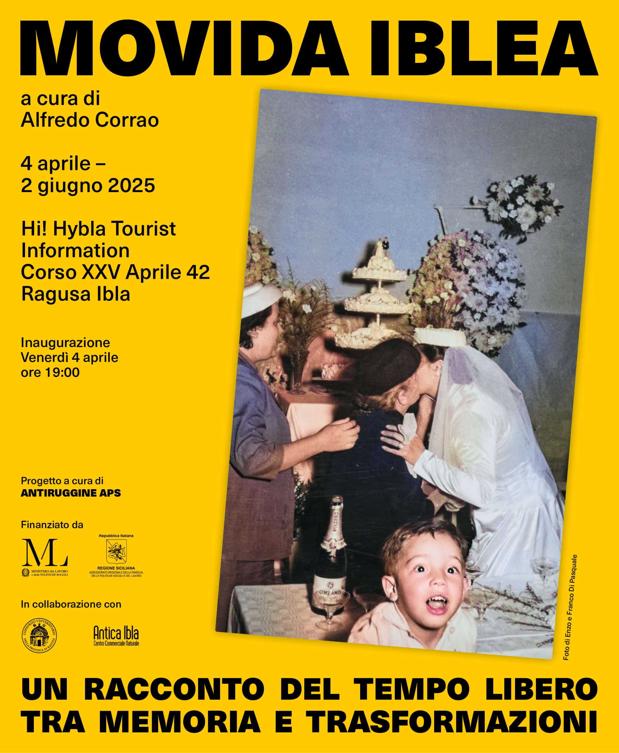 Orari Infopoint: 10:00-13:30 e 15:30-20:00 La mostra è prodotta dall'associazione APS Antiruggine, promotrice del Ragusa Foto Festival, ed è il frutto di una selezione di vecchie fotografie di famiglia, (53 foto su oltre 300), che aiuterà a illustrare il Progetto “Movida Iblea”, nato con l’obiettivo di coinvolgere la comunità iblea nel ricostruire la sua memoria, attraverso