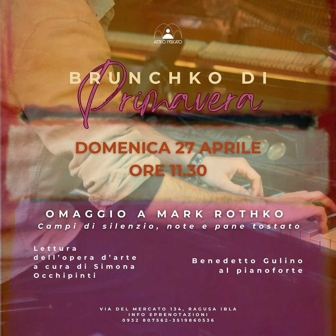Immergiti nei colori, nei suoni e nei profumi di un’esperienza unica: OMAGGIO A MARK ROTHKO “Campi di silenzio, note e pane tostato” Un viaggio tra le sfumature emozionali di Rothko, le armonie del pianoforte e il gusto di un brunch speciale. Con: • Lettura delle opere a cura di Simona Occhipinti, storica dell’arte • Performance