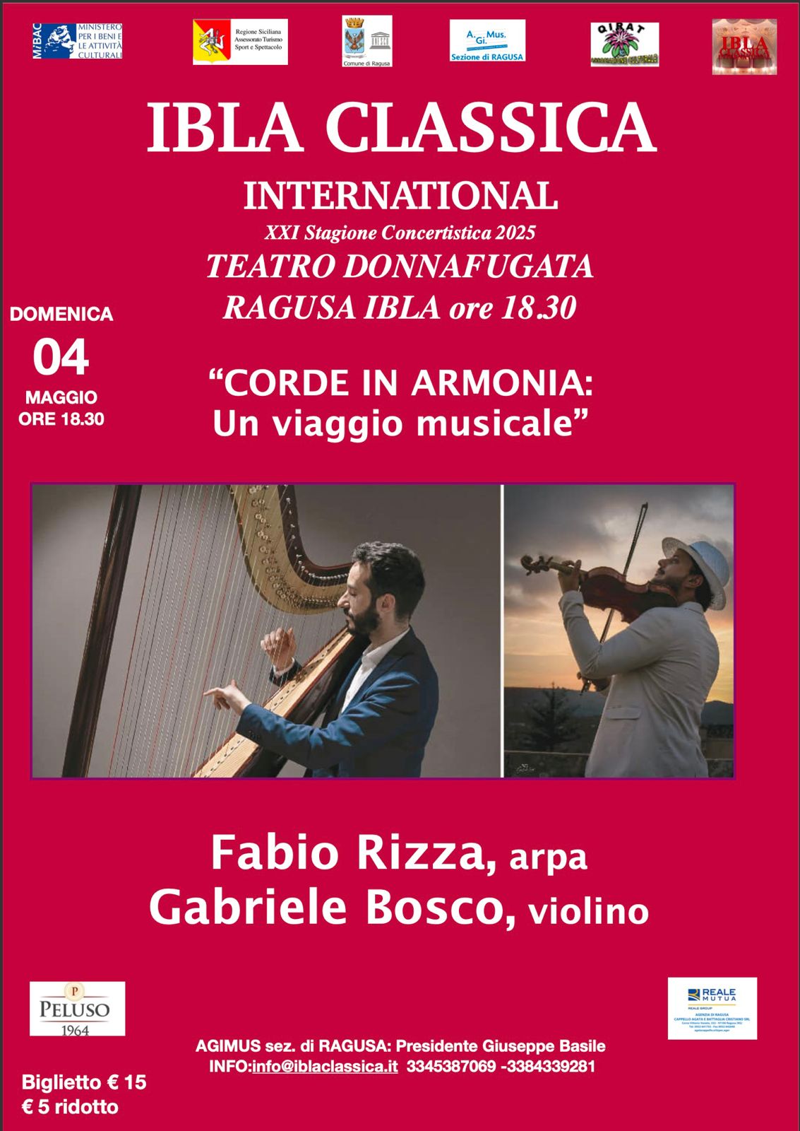 Evento musicale sito in Ragusa Ibla organizzato da: Caffè del Borgo Gelati Divini Siculamente Market San Giorgio Caffetteria Bianco Mangiare Le merabiglie Officina 31 Piazza Duomo Ristorante la Piazzetta Terre Barocche Love for Leather Ingresso gratuito