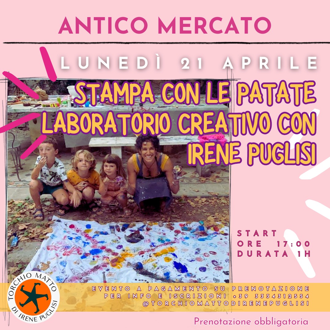 𝐔𝐧 𝐥𝐚𝐛𝐨𝐫𝐚𝐭𝐨𝐫𝐢𝐨 𝐜𝐫𝐞𝐚𝐭𝐢𝐯𝐨 𝐚 𝐜𝐮𝐫𝐚 𝐝𝐢 𝐈𝐫𝐞𝐧𝐞 𝐏𝐮𝐠𝐥𝐢𝐬𝐢 𝐃𝐨𝐦𝐞𝐧𝐢𝐜𝐚 𝟐𝟏 𝐚𝐩𝐫𝐢𝐥𝐞 – 𝐎𝐫𝐞 𝟏𝟕.𝟎𝟎 Con delle semplici patate scopriremo il 𝐦𝐨𝐧𝐝𝐨 𝐝𝐞𝐥𝐥’𝐢𝐧𝐜𝐢𝐬𝐢𝐨𝐧𝐞 𝐞 𝐝𝐞𝐥𝐥𝐚 𝐬𝐭𝐚𝐦𝐩𝐚 𝐬𝐮 𝐬𝐭𝐨𝐟𝐟𝐚… e sì, anche sulla tua maglietta! Porta una t-shirt chiara da personalizzare! Un pomeriggio aperto a tutti, 𝐝𝐚𝐢 𝟒 𝐚𝐧𝐧𝐢 𝐢𝐧 𝐬𝐮: grandi, piccoli, curiosi e creativi! 𝐄𝐯𝐞𝐧𝐭𝐨