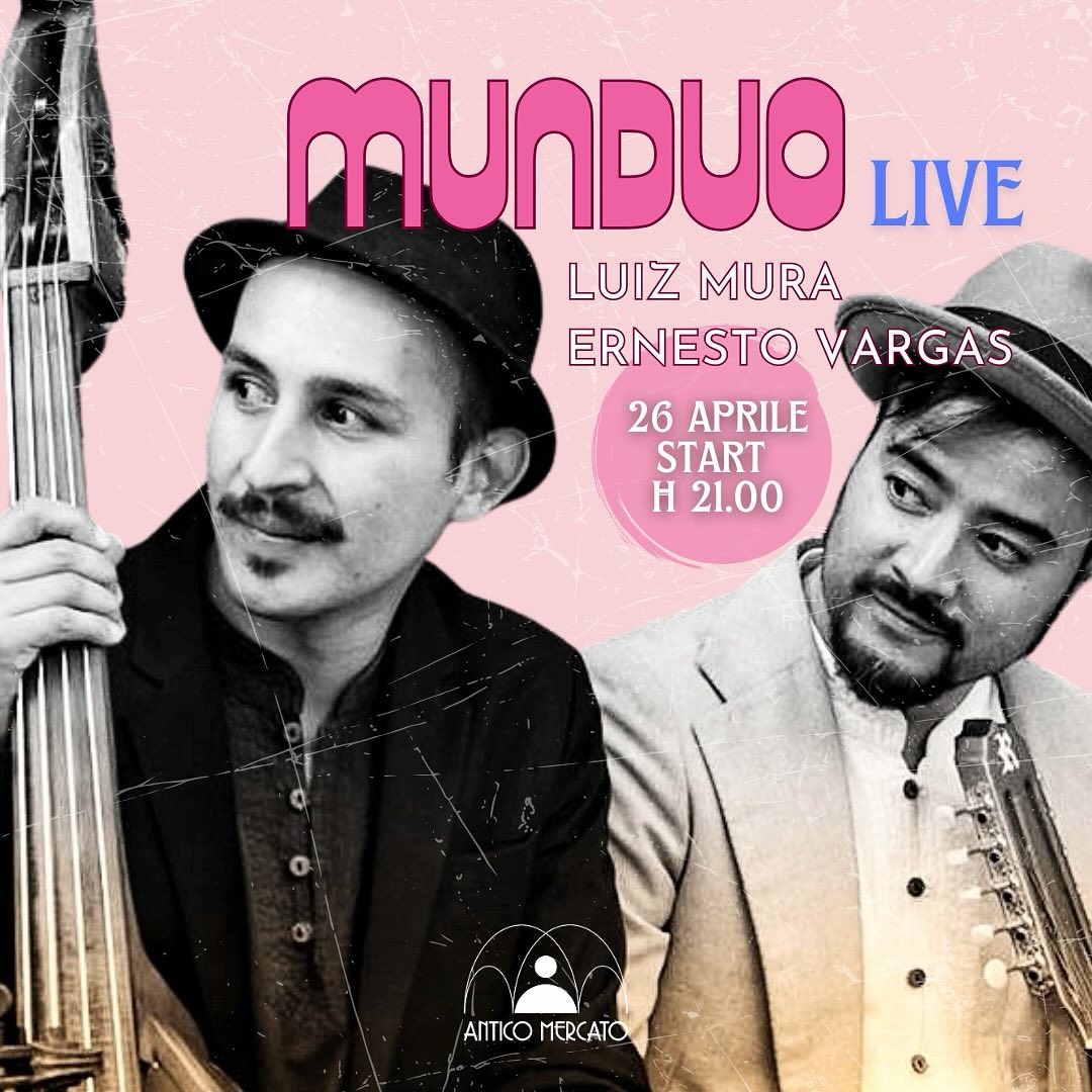 Sabato 𝟐𝟔 𝐀𝐩𝐫𝐢𝐥𝐞 – 𝐨𝐫𝐞 𝟐𝟏.𝟎𝟎𝐌𝐔𝐍𝐃𝐔𝐎 𝐥𝐢𝐯𝐞 𝐚𝐥𝐥’𝐀𝐧𝐭𝐢𝐜𝐨 𝐌𝐞𝐫𝐜𝐚𝐭𝐨Via del Mercato 134, Ragusa IblaUn viaggio musicale tra i ritmi del samba brasiliano, le melodie messicane e i profumi del Mediterraneo.𝐋𝐮𝐢𝐳 𝐌𝐮𝐫𝐚 (chitarra e voce) ed 𝐄𝐫𝐧𝐞𝐬𝐭𝐨 𝐕𝐚𝐫𝐠𝐚𝐬 (basso e voce), membri dei MiraMundo, da oltre dieci anni percorrono il mondo insieme, intrecciando vita e musica