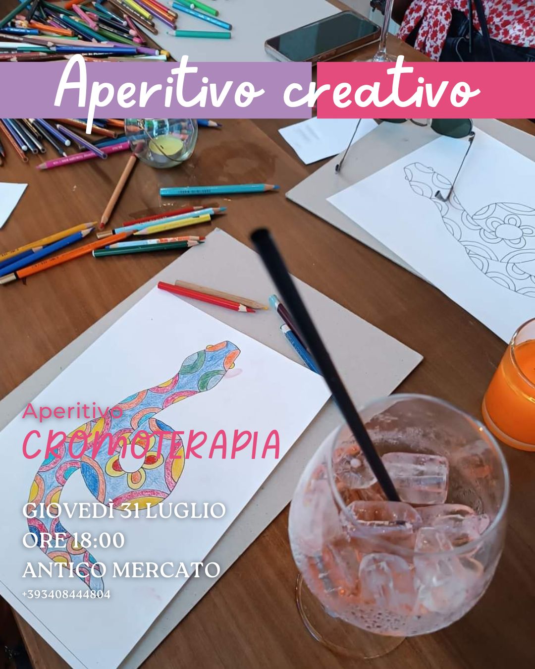 ✨GIOVEDÌ 31 luglio ore 18.00 👉APERITIVO CREATIVO 🖌️ CROMOTERAPIA: “lettura degli stati d’animo attraverso i colori 🎨” Cosa ti aspetta: 🎨 Colorazione e lettura di un mandala 🍷 Aperitivo 📍 Dove: Via del Mercato, 134 – Ragusa Ibla 🕔 Ore 17.30 💶 Prenotazioni: Whatsapp 340 8444804 Telefono 0932 807562 L’evento sarà guidato da Daria Musso,
