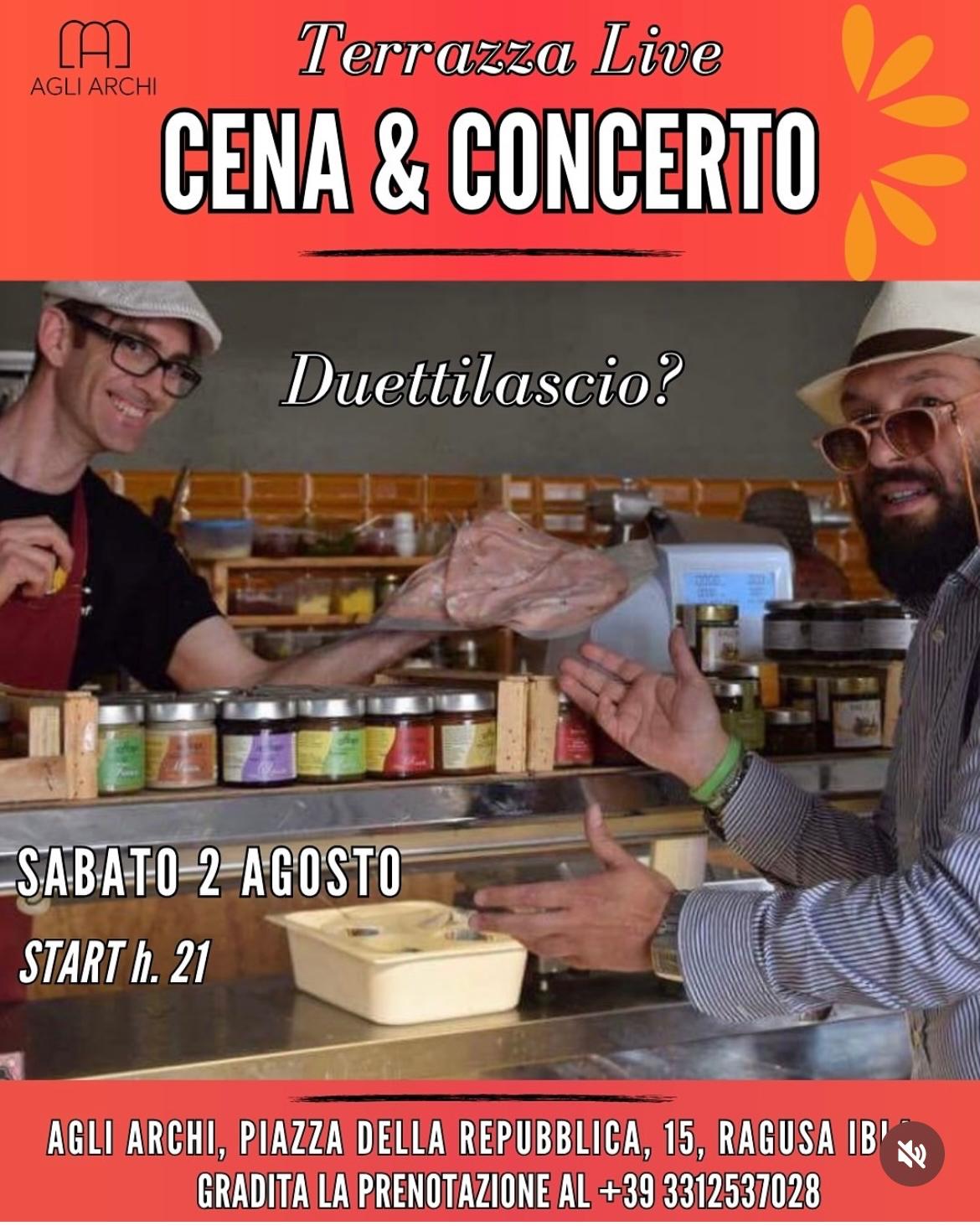 Sabato 2 agosto, start h 21 Agli Archi, Piazza della Repubblica 15, Ragusa Ibla Gradita la prenotazione al +39 3312537028