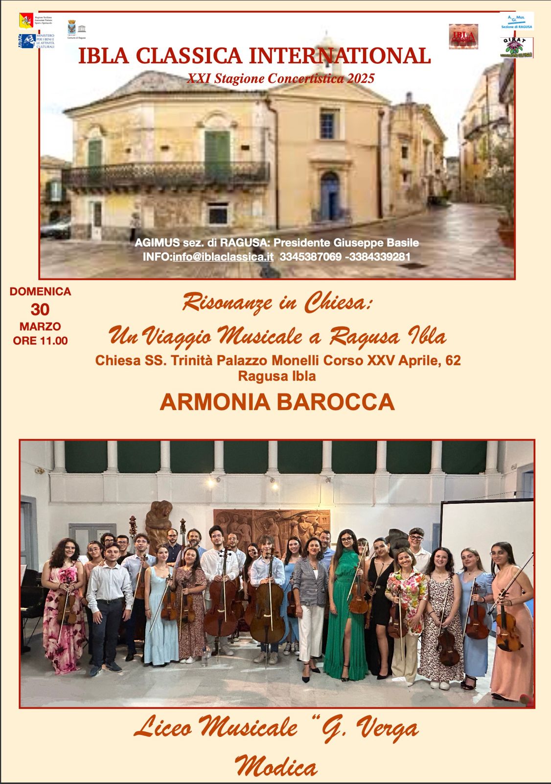 IBLA CLASSICA INTERNATIONAL apre la XXI Stagione Concertistica 2025 con "Risonanze in Chiesa: Un Viaggio Musicale a Ragusa Ibla". L'evento si terrà Domenica 30 marzo alle ore 11:00 nella Chiesa SS. Trinità Palazzo Monelli in Corso XXV Aprile, 62, Ragusa Ibla. Suoneranno gli studenti e i docenti del Liceo Musicale "G. Verga" di Modica. Per