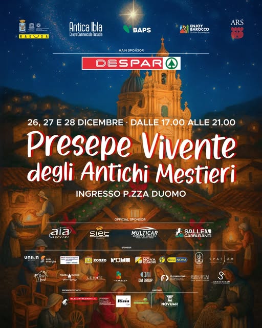 Giardini Iblei RagusaGiovedì 25 Dicembre: 16.00 - 22.00 Venerdì 26 Dicembre: 16:00 - 22:00 Sabato 27 Dicembre: 16:00 - 22:00 Domenica 28 Dicembre: 16.00 - 22.00 Lunedì 29 Dicembre: 16.00 - 22.00 Martedì 30 Dicembre: 16.00 - 22-00 Mercoledì 31 Dicembre: 16.00 - 22.00 Giovedì 1 Gennaio: 16.00 - 22.00 Venerdì 2 Gennaio: 16.00 - 22.00