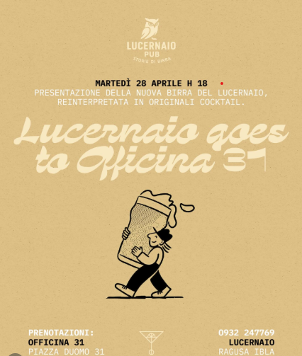 Martedรฌ 28 aprile h 18:00 Presentazione della nuova birra delย @lucernaio.pub Donโt miss out โ book your table: 0932 247769 |