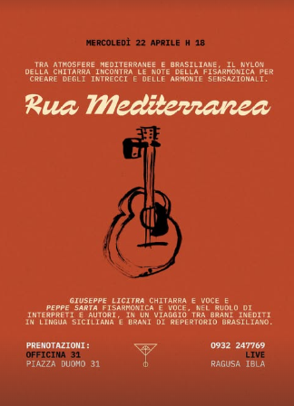 Tra atmosfere mediterranee e brasiliane, il nylon della chitarra incontra le note della fisarmonica per creare degli intrecci e delle armonie sensazionali. ๐ช Giuseppe Licitra chitarra e voce e Peppe Sarta fisarmonica e voce, nel ruolo di interpreti e autori, in un viaggio tra brani inediti in lingua siciliana e brani di repertorio brasiliano. ๐ถ |