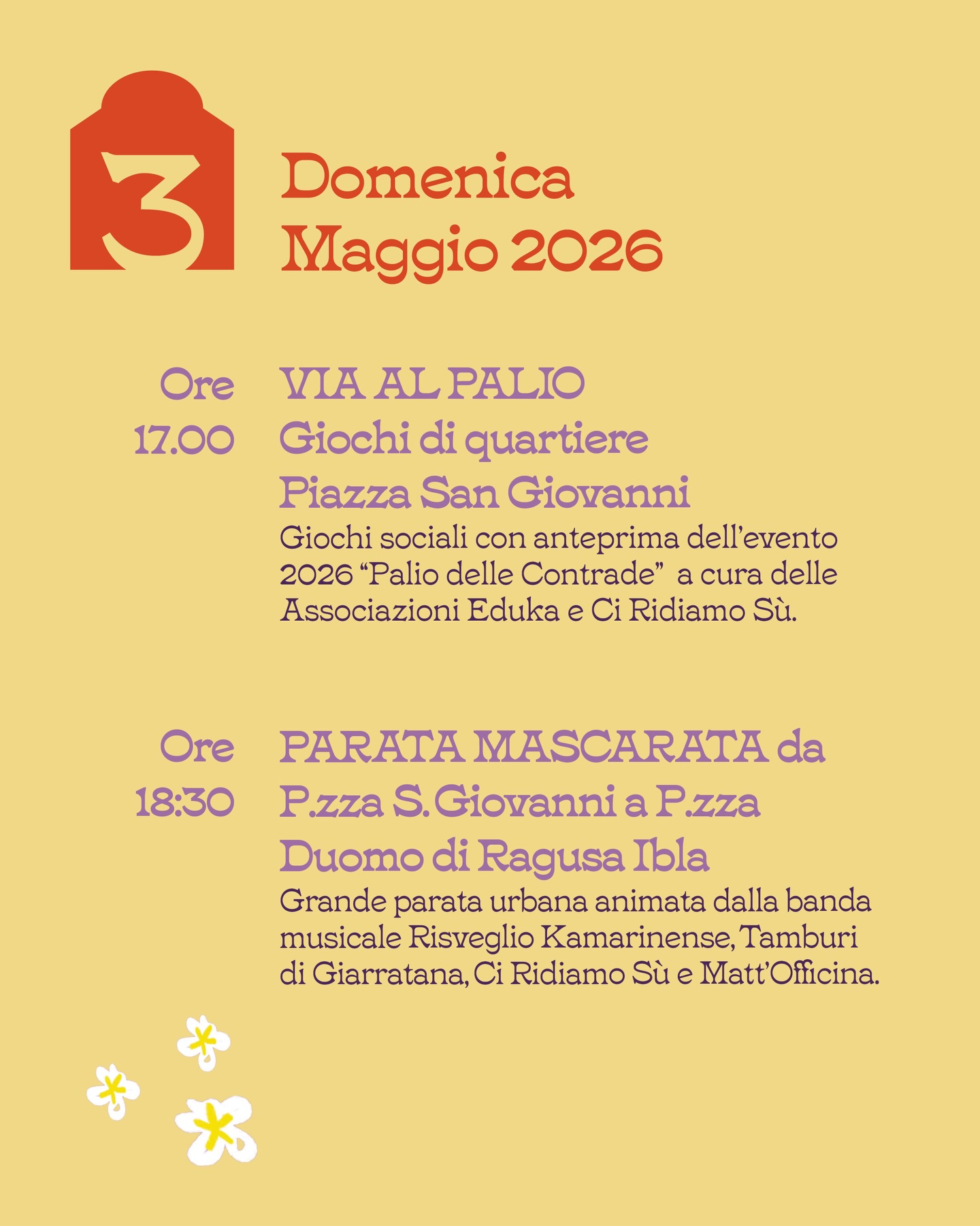 Grande parata urbana da Piazza S. Giovanni a Piazza Duomo di Ragusa ibla animata dalla banda musicale Risveglio Kamarinese, Tamburi di Giarratana, Ci ridiamo Sù e Matt’Officina.