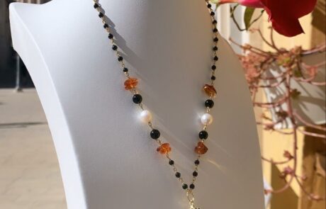 Barbara Arezzi, après avoir étudié l’art de l’orfèvrerie à Florence à la prestigieuse Académie R. Riachi, en 1991 avec son mari Michele ouvre son propre atelier -“Le Merabiglie” – à Ragusa Ibla sur la Piazza Duomo, où vous trouverez une ligne de bijoux qui combine des métaux précieux, pierres dures et billes de céramique fine de Caltagirone. Découvrez le caractère unique de ces bijoux authentiques et inimitables.