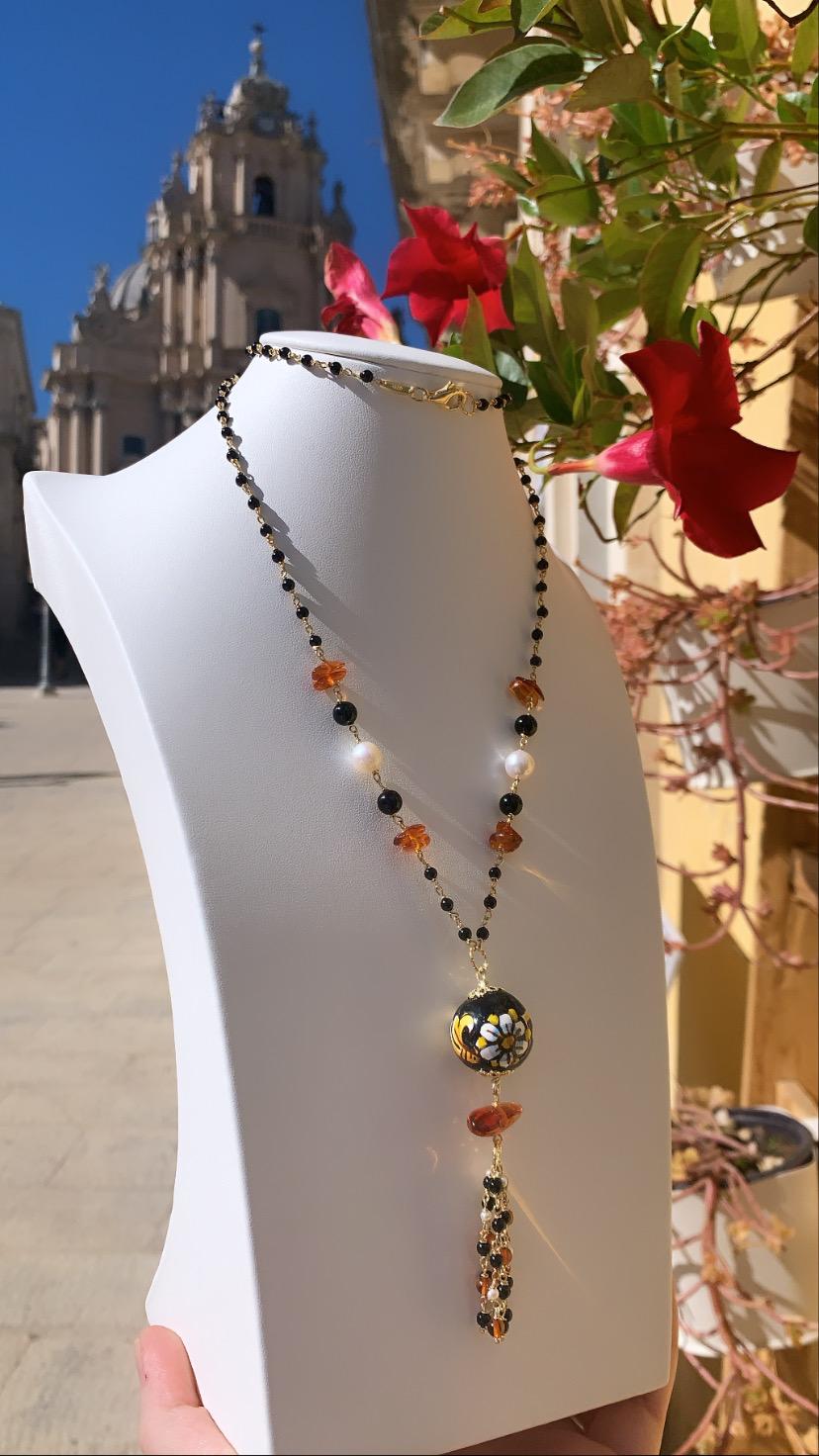 Barbara Arezzi, after having studied the art of goldsmithing in Florence at the prestigious Accademia R. Riachi, in 1991 together with her husband Michele opens the laboratory -“Le Merabiglie” – in Ragusa Ibla in Piazza Duomo, where you will find a line of jewelry that combines precious metals, hard stones and balls of fine ceramics from Caltagirone. Discover the uniqueness of these authentic and inimitable jewels.